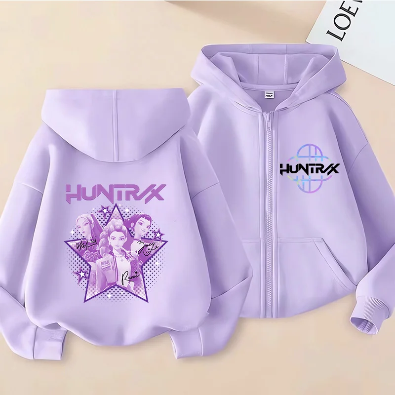 Sweat à capuche zippé enfant, motif manga Huntrix
